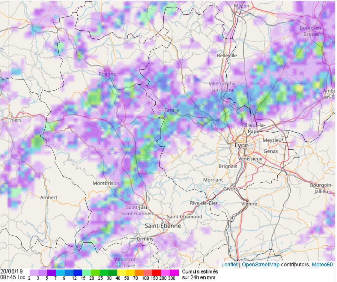 Demain la perturbation qui devait nous survoler sans réellement nous mouiller a changé d'idée : ce sera sans doute plus pluvieux que prévu, en tout cas, elle gâchera une grande partie de la journée. Prévoyons donc des lames d'eau de l'ordre de 10 mm sur les reliefs, probablement davantage sur les monts du Forez et Madeleine. Le vent d'ouest à nord-ouest exagèrera l'impression de fraîcheur.