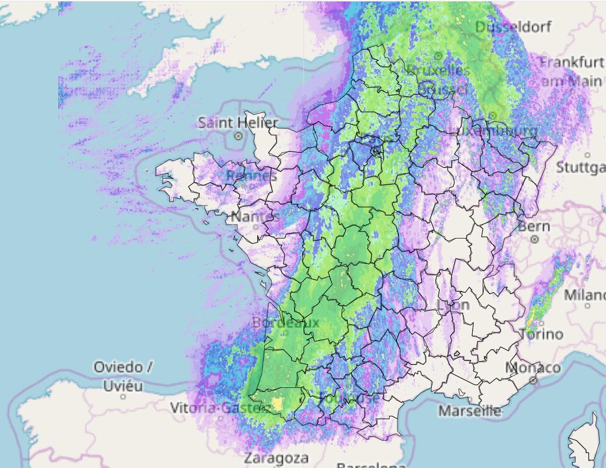 La nuit prochaine, une bouffée pluvieuse donnera tout d'abord quelques flocons supplémentaires aux alentours de 1200-1300 m puis ce sera très rapidement de l'eau pour toutes nos altitudes. A priori seules les moitiés nord de nos départements seraient concernées par cette pluie, pluie qui ne donnera au final pas grands millimètres : rien ou si peu en plaine et 3 ou 5 par ici. Une fois les gouttes essuyées en matinée, la journée de demain se déroulera au sec dans une ambiance redevenue très douce (12-14° en plaine). L'après-midi verra le ciel se dégager progressivement, une percée ensoleillée est envisageable avant le coucher.